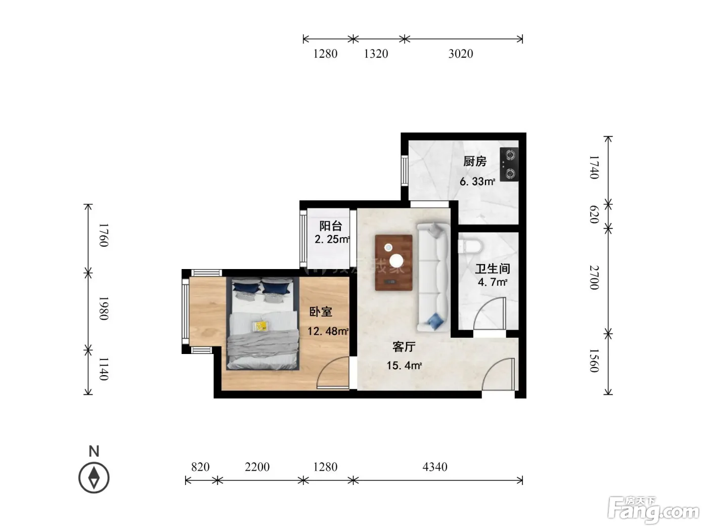 • 1室1厅1卫