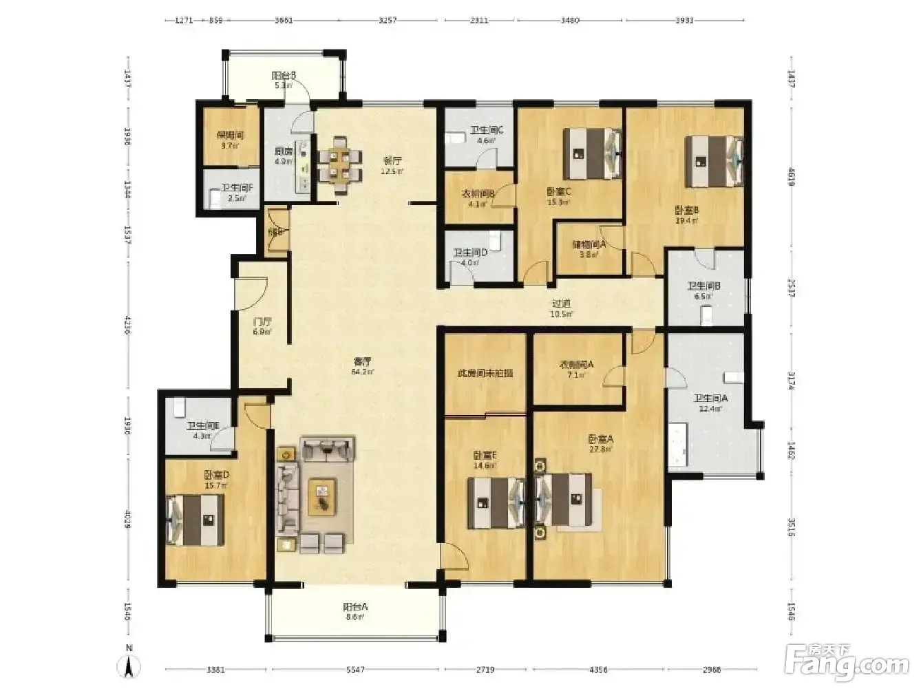 金融世家387.13平米精装南北5室2厅4卫位置户型采光好