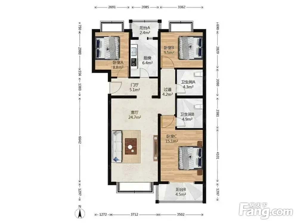 3室1厅2卫