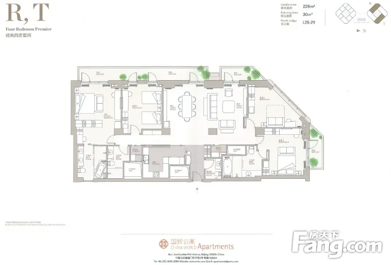 户型:四居 朝向:南北 面积:260 国贸正规四居,户型方正,采光充足,高层视野。观小区私人花园及部分CBD花园,步行就可以到日坛公园,地理位置极好,交通便利,小区人员多是,领事馆人员,韩国,美国,英国等国际友人,是经常会在CBD公园野餐,有着浓厚的人文气息。 周边配套: 交通:附近路网密集,地铁金台夕照站、国贸站、东大桥站、永安里站等 公园:CBD大花园,步行可至历史园林-日坛公园; :社区内配有伊顿双语、艾毅国际、巧智博仁; 购物:社区内配有捷妮露生活、社区周边有世贸购物天阶、侨福芳草地、财富购物中心西以及各大品牌云集的国贸商城; 餐饮:小区生活配套齐全,茶楼、咖啡厅,丰富您的闲暇时光,中式餐厅,国外料理,撩拨您的味蕾。