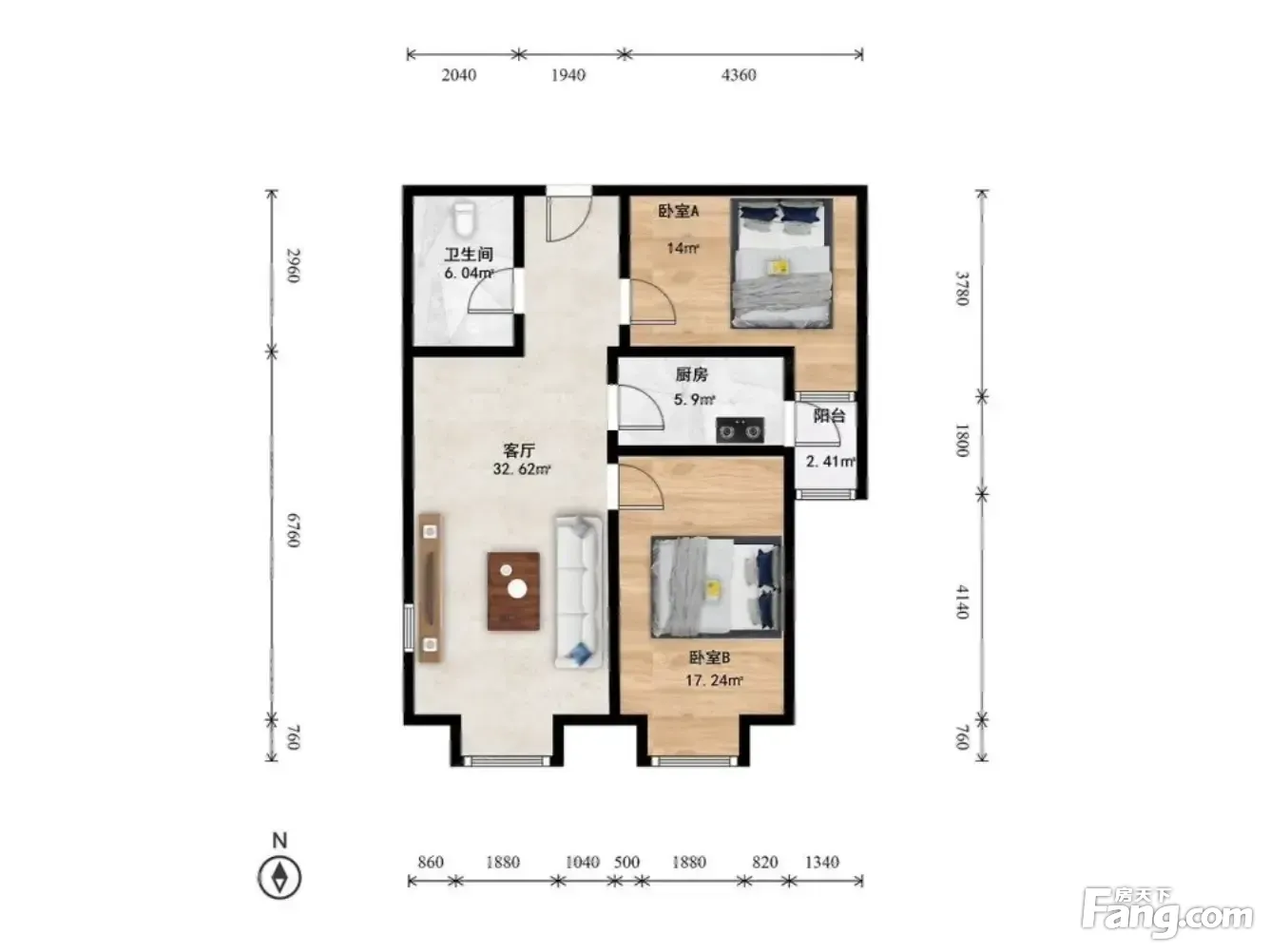 可月付 百子湾家园南向两居室 精装修 女神优选