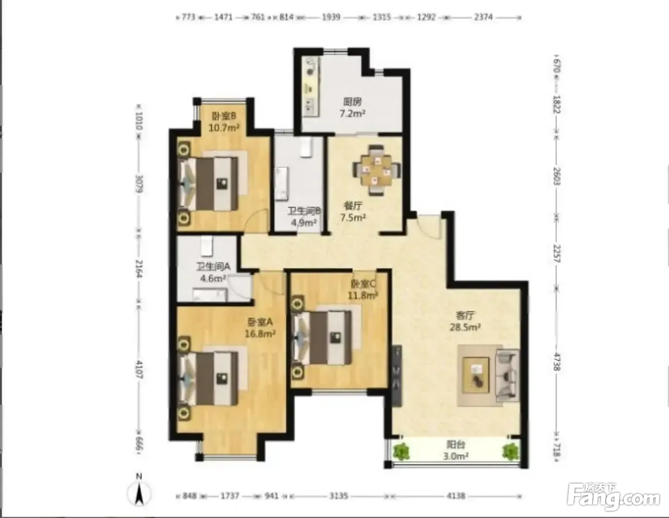 3室1厅2卫