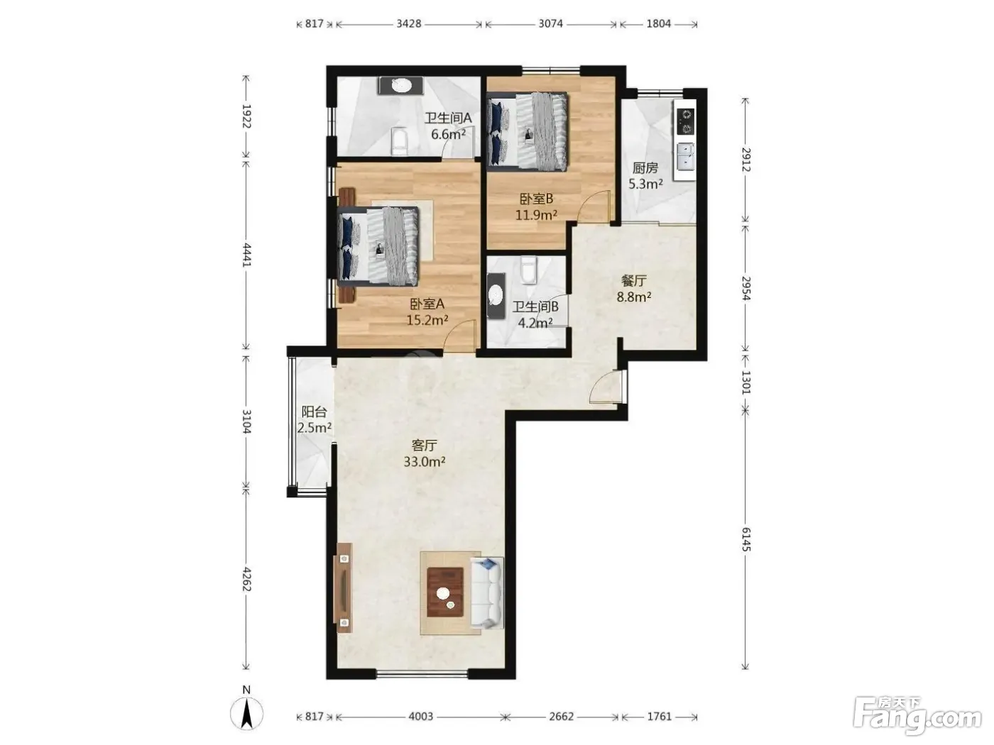 2室1厅2卫