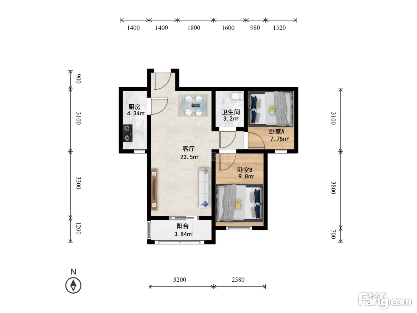 整租·东坝·将府锦苑2号院·2室·1厅