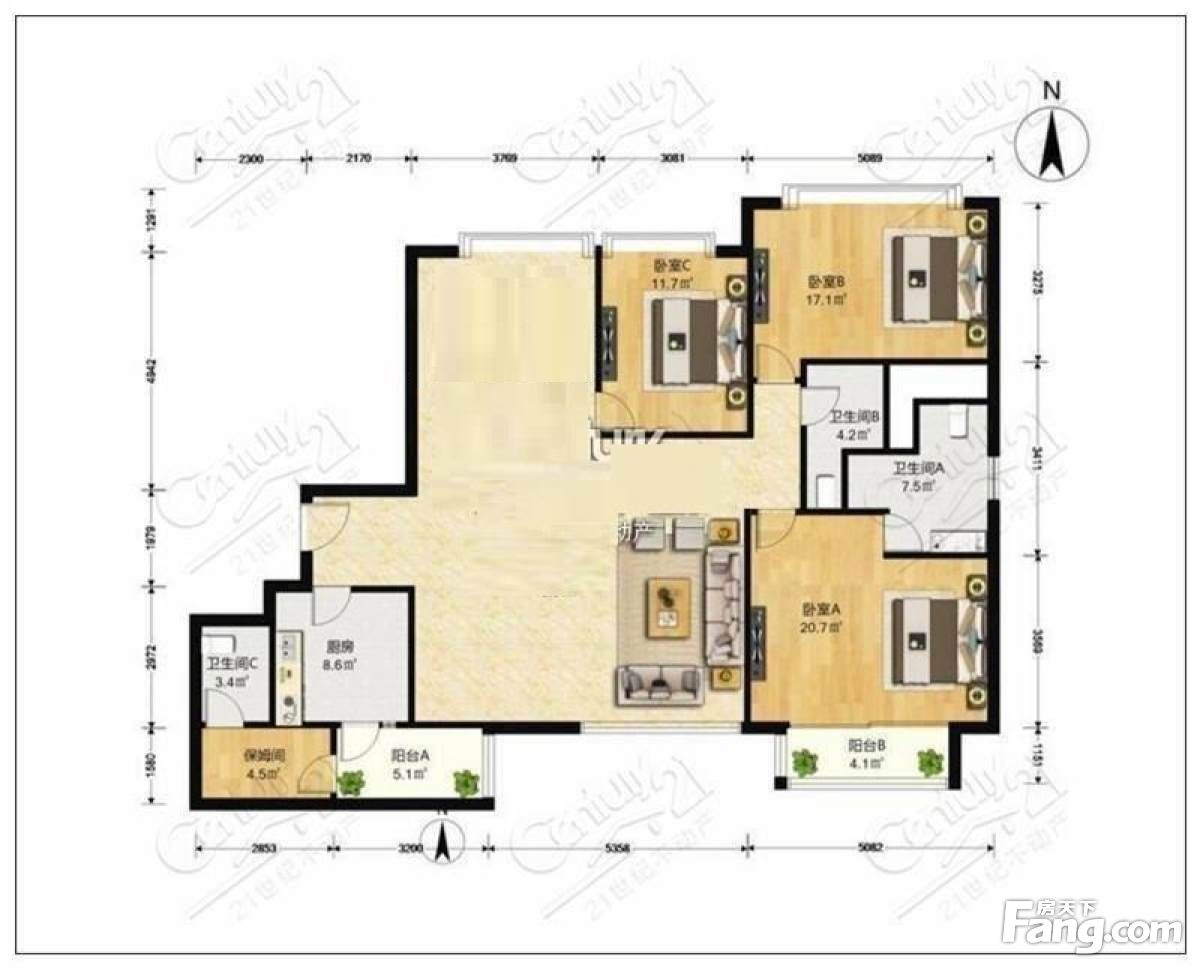 国贸永安里东方瑞景,213平三居三卫,2.3万,南北通透高层