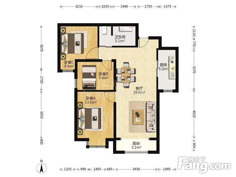 3室1厅1卫