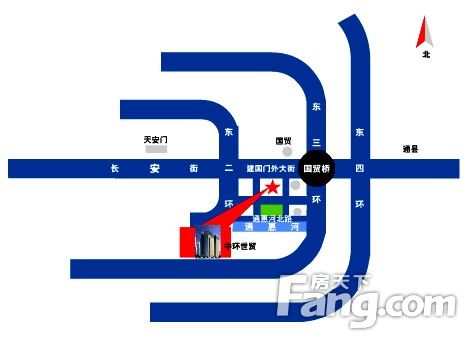 项目位于国贸商圈,交通便利双地铁;地铁1号、10号线国贸站,多条公交站点汇集,员工上下班很方便。