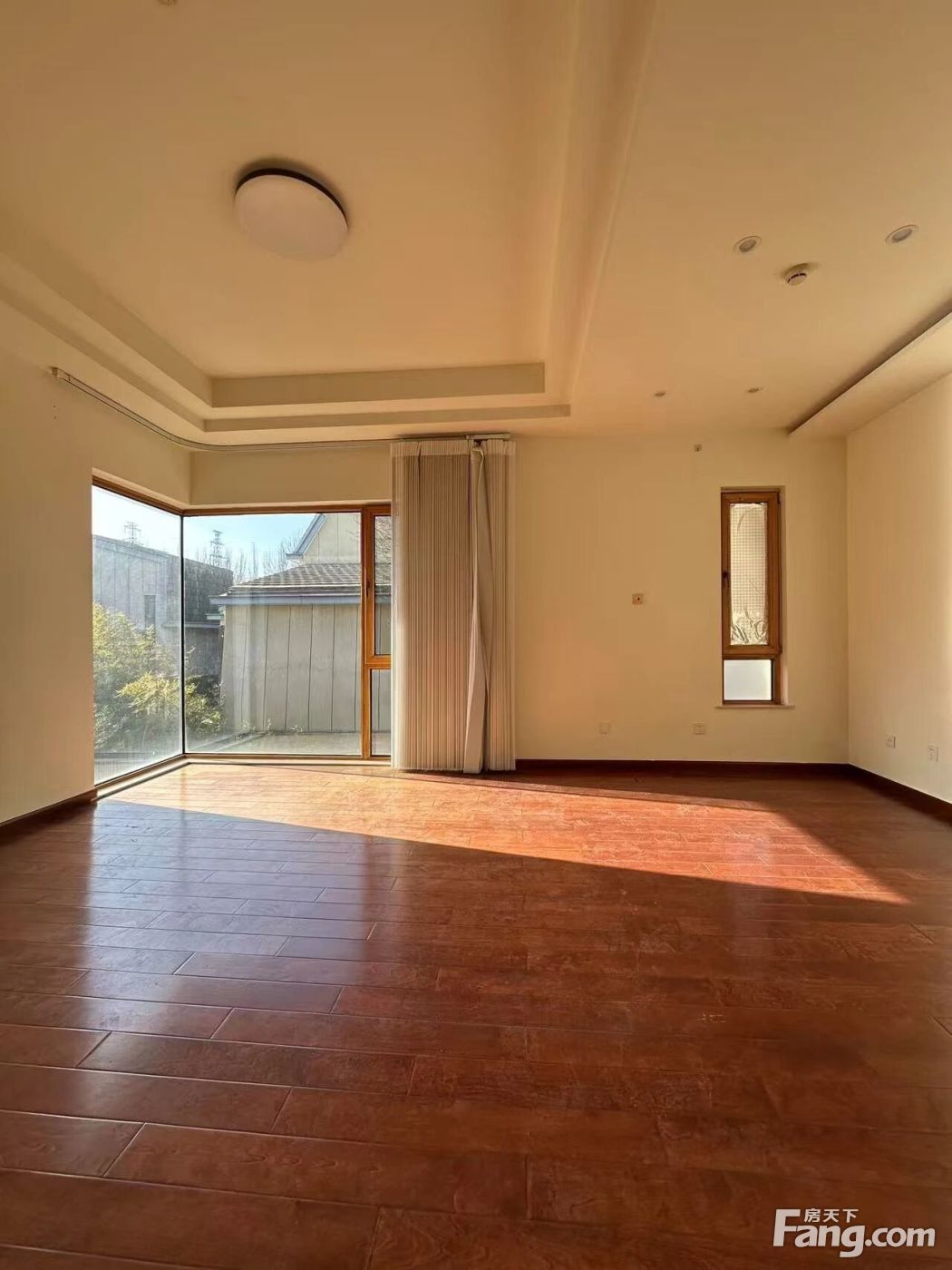 本房一共三层,地上两层,地上共5个房间,首层有卧室,客厅挑高4.5米,二层3个房间,中间有起居厅,三层有天窗。采光好,花园方正集中。