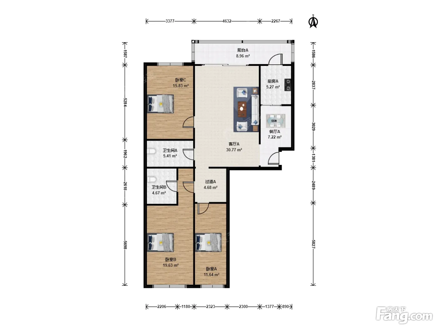 3室1厅2卫