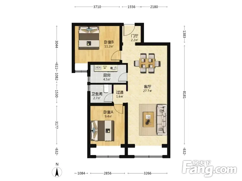 江南府 2室1厅 84.0平米