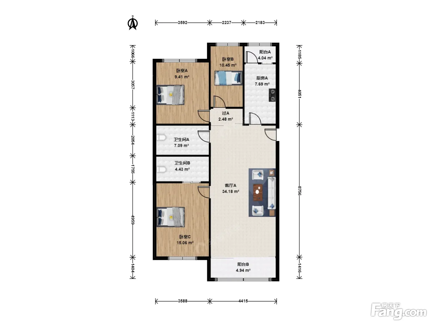 3室1厅2卫