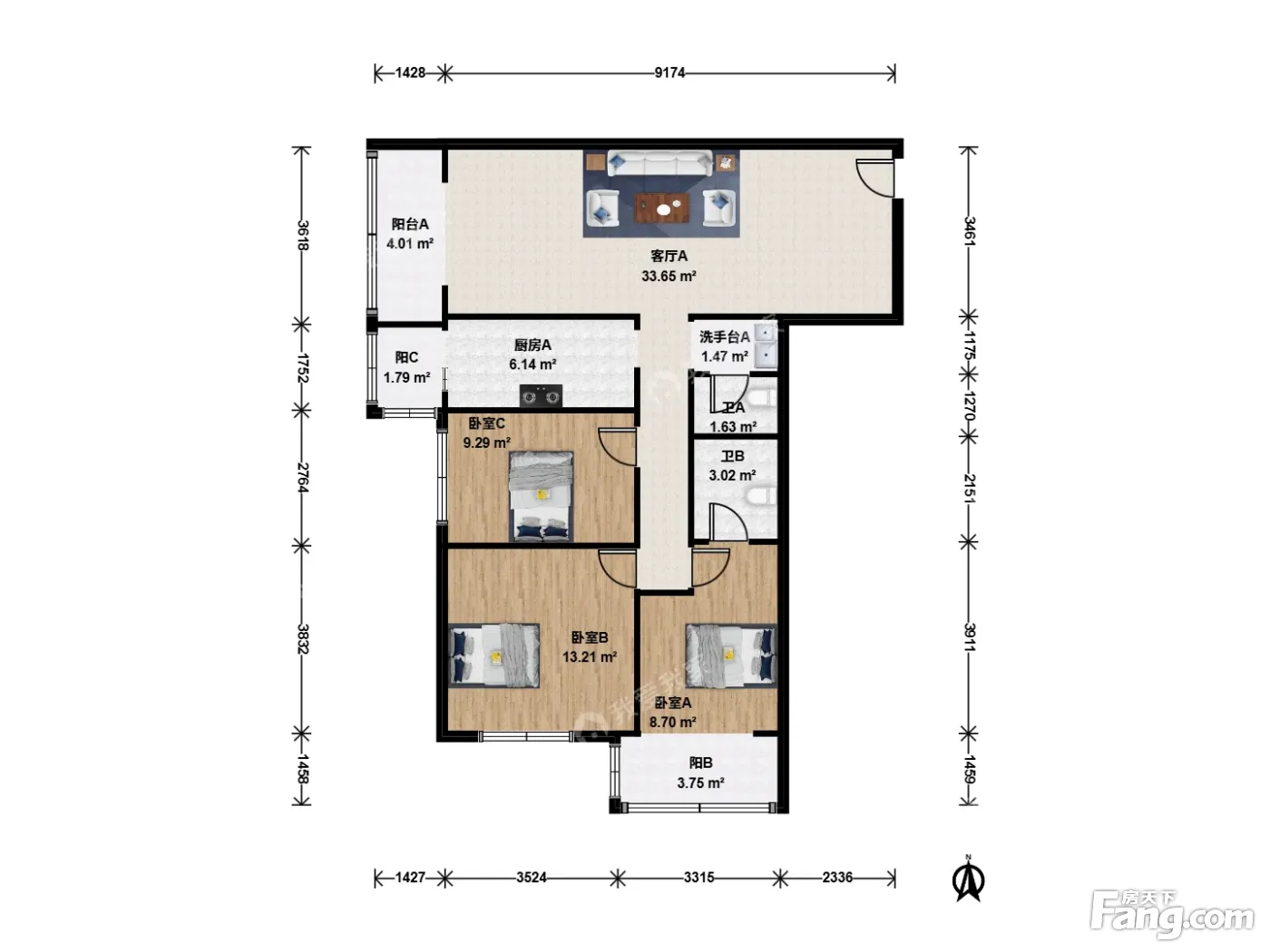 3室1厅2卫