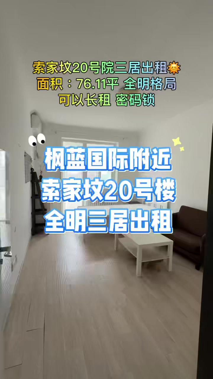 <br>户型介绍:本房为整租房源,户型为3室1厅1卫,建筑面积为76.11平米,朝向为西南北。<br>小区信息:该房源所在小区为索家坟20号院小区,小区建筑年代约为1985年,小区绿化率10.0%,小区共4栋楼。