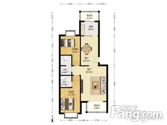 4号线西红门站 荟聚宜家东兴都苑 2室1厅 101.49平米