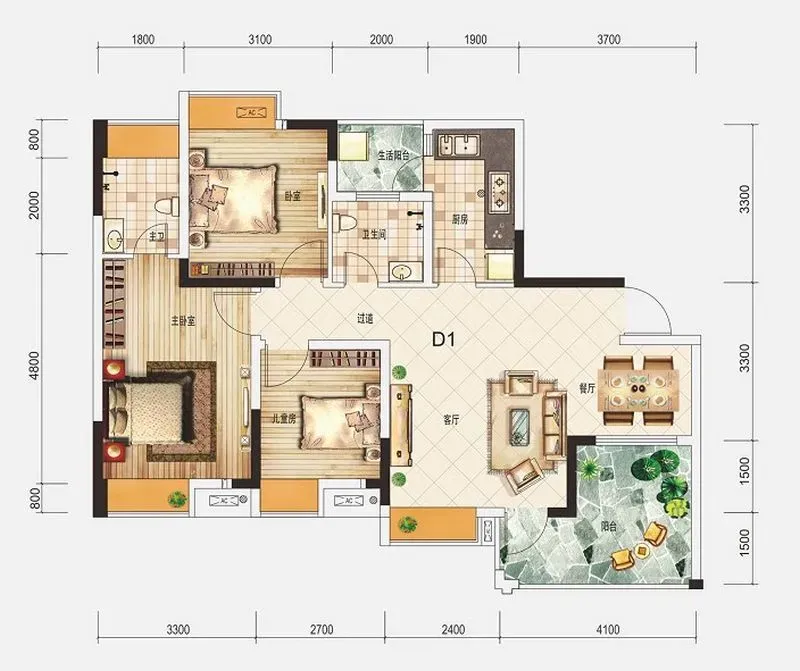 3室1厅2卫