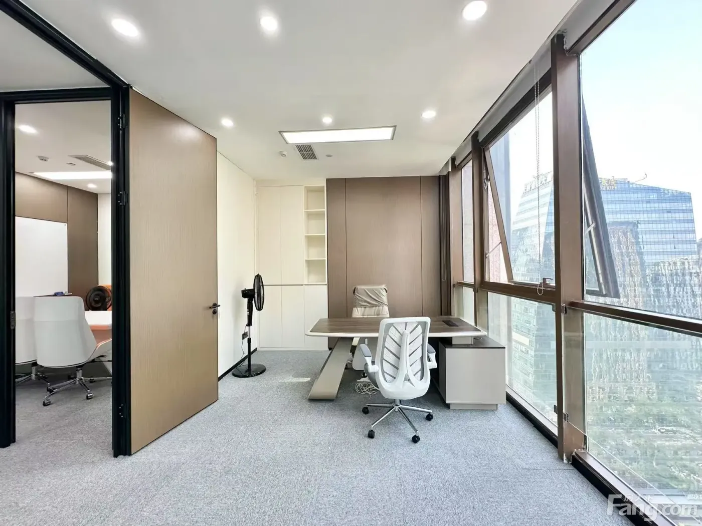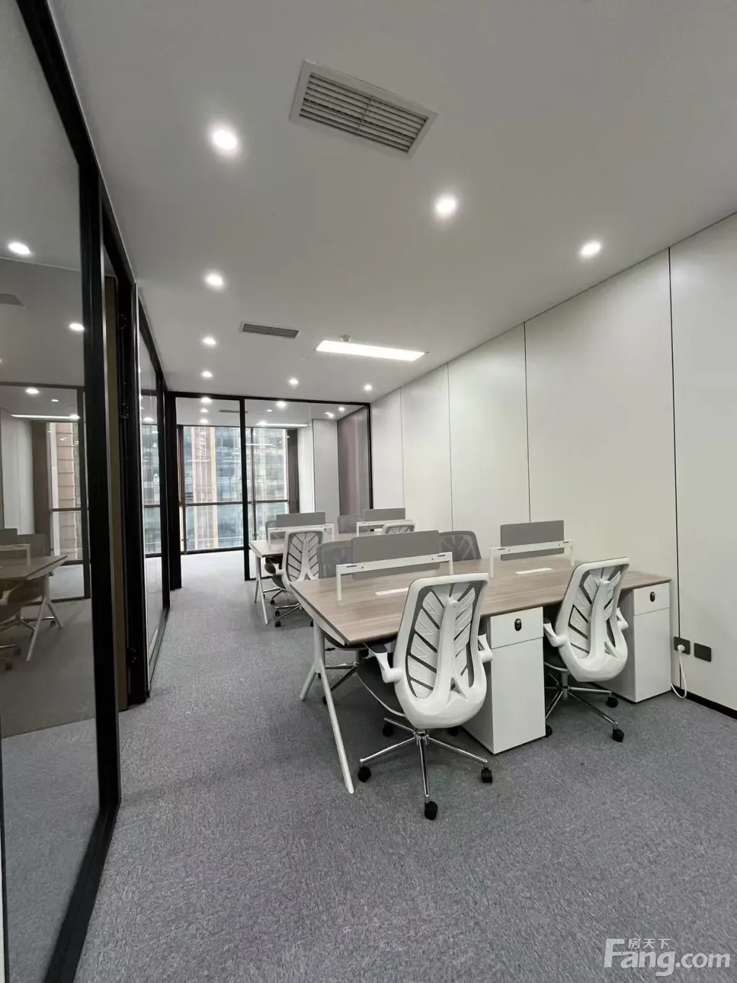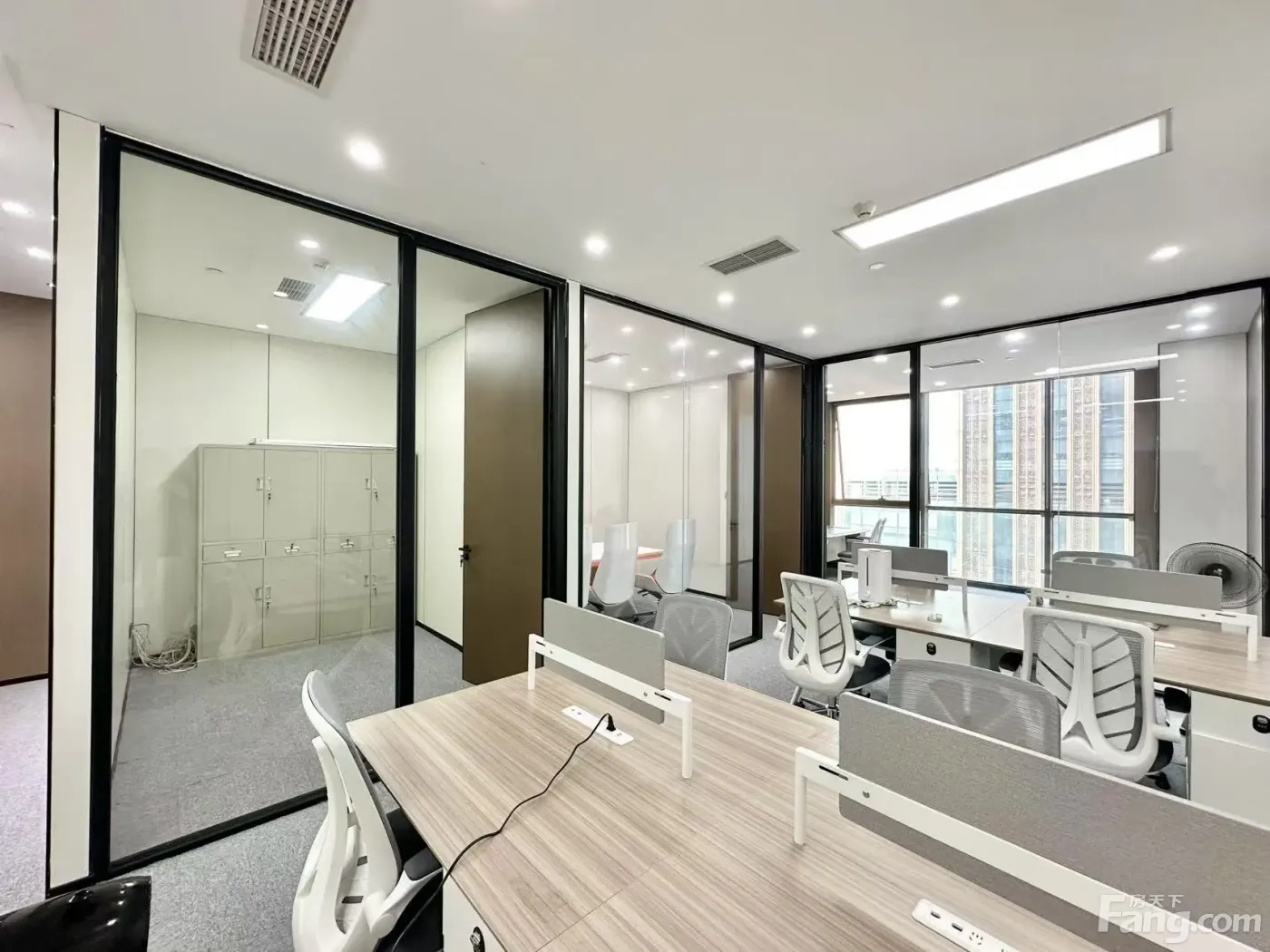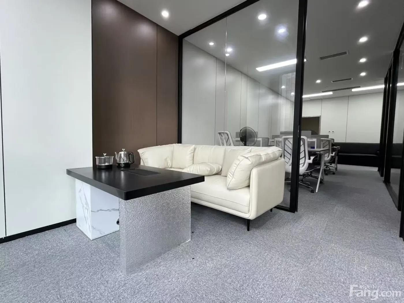 东方希望天祥广场B座2402,100平,三个隔间,超大老板间 有喝茶接待区。 设有会议室,白板,高档会议桌椅 工区整洁漂亮,桌椅广东家具,品质高档。
