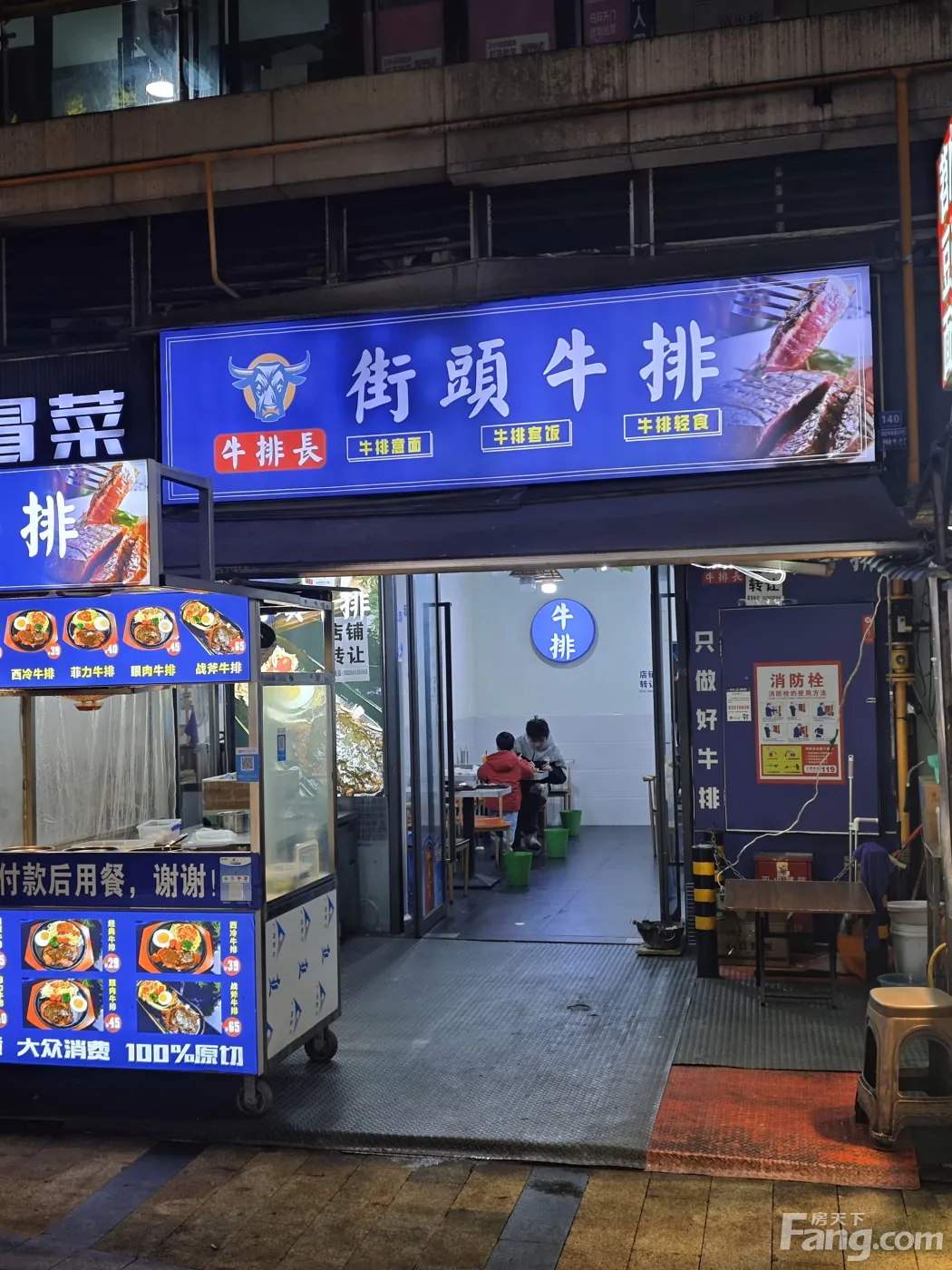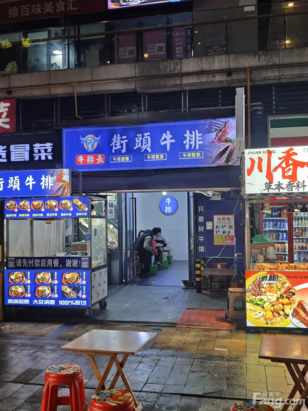 星耀天都商圈小吃街夜市临街门面,45㎡,简装,房东直租,无转让费,目前在做街头牛排,租期到本月中旬,水电气三通,门口有2个摊位,可自做或出租,外摆也方便,适合做餐饮美食,押一付三,有兴趣的联系