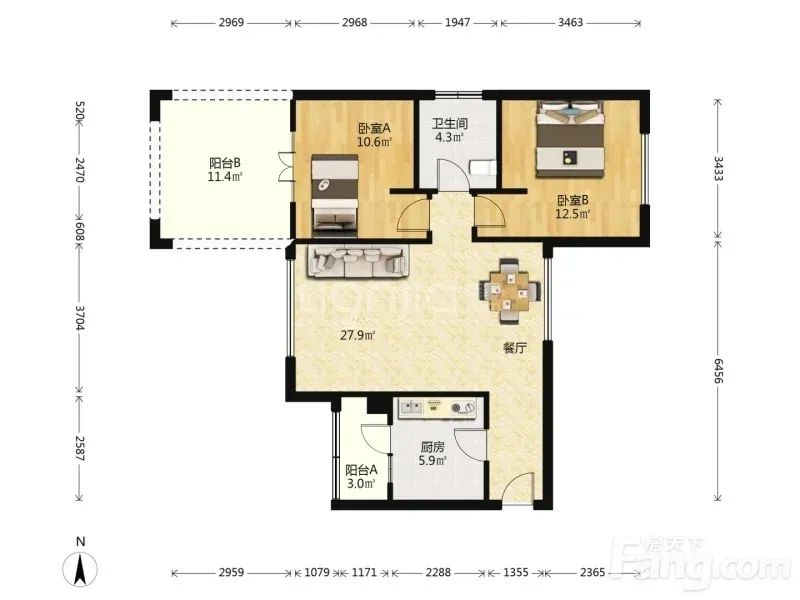 南湖国际南区 2室1厅 84.09㎡ 2