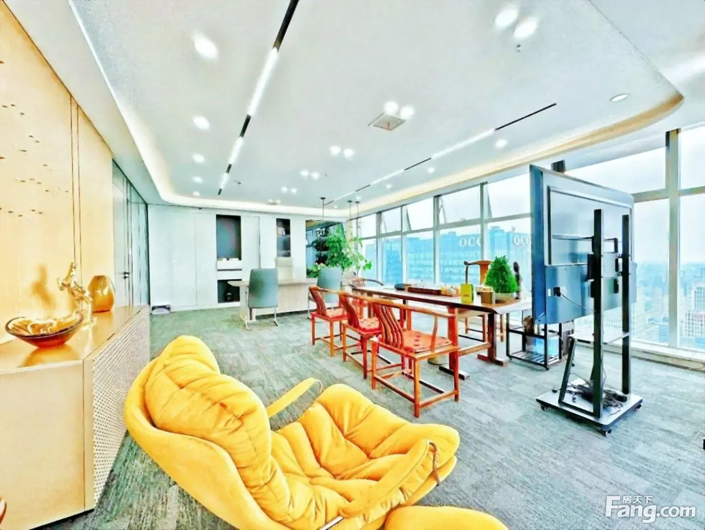 业主直租!大气老总室双面采光带茶室天际视野俯瞰天府三街香年