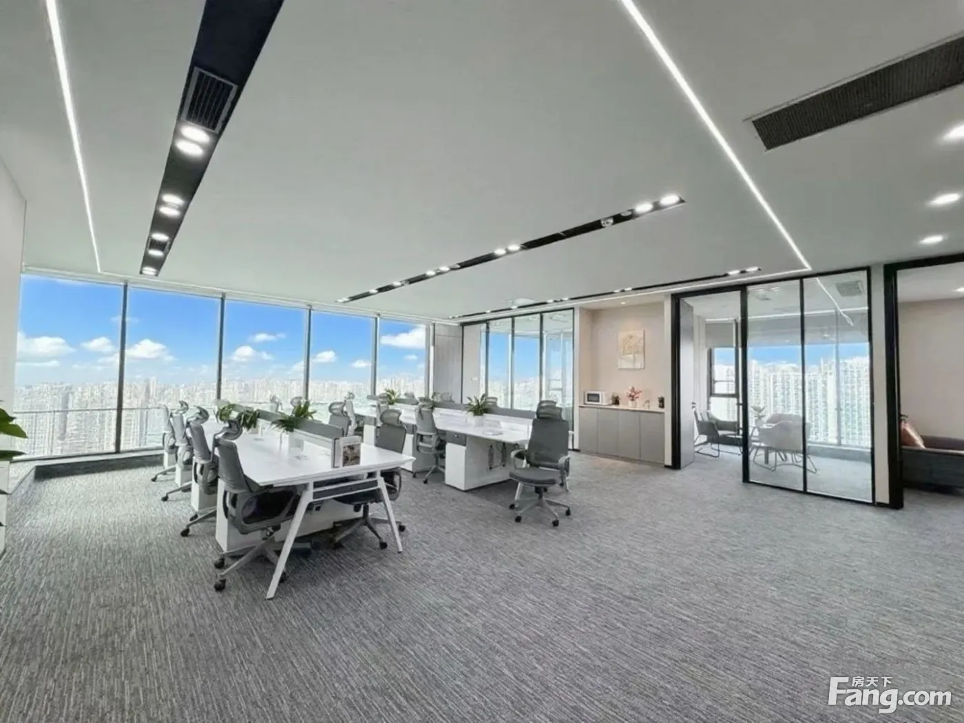 海昌路双地铁!双面采光超大老板室丨7隔间36工位丨天际视野