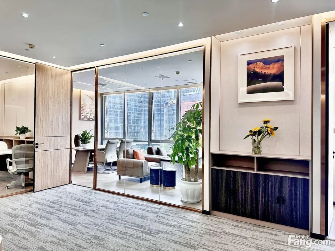 正对电梯口!5隔间20工位!东南朝向!带茶台!公摊低高性价比