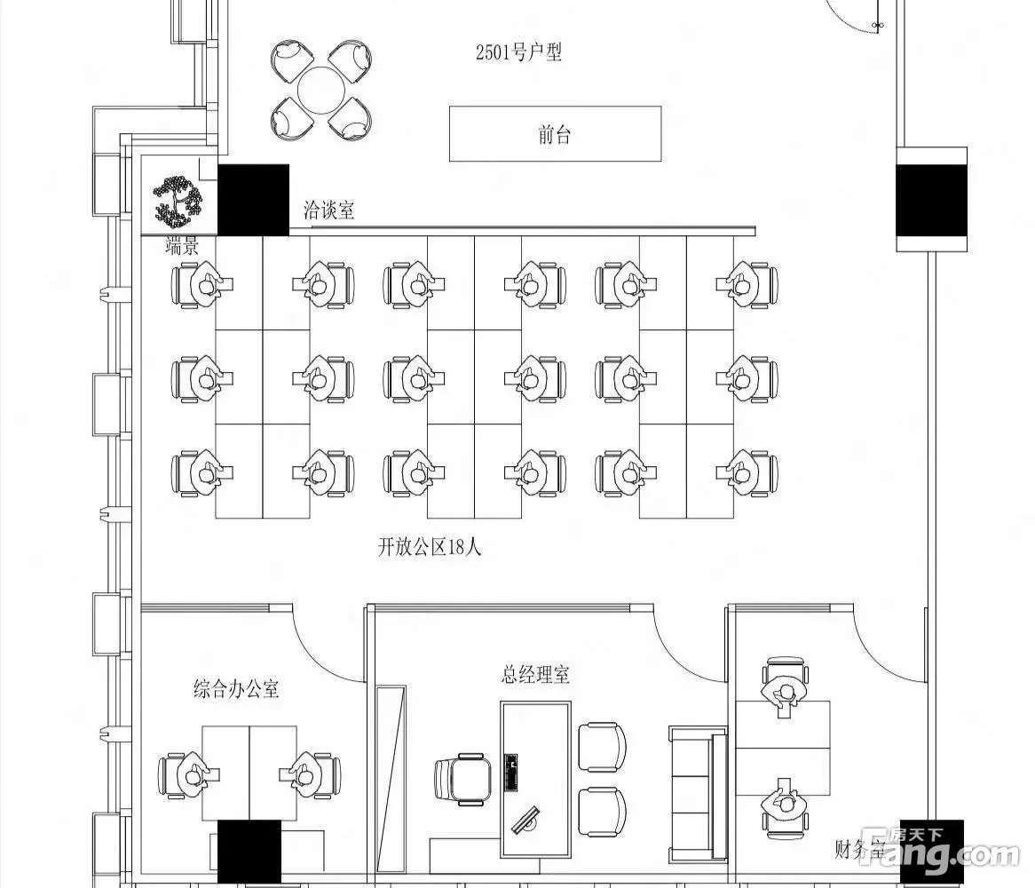 东一环·精致小户型·双面采光户型丨3隔间18卡位·接待办事处