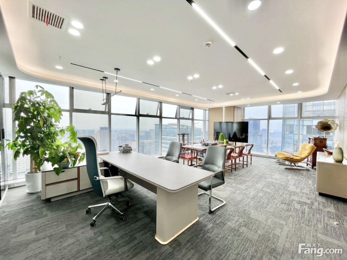 会晤茶室!电梯口接待现房!9隔间70工位!天际视野!天府三街