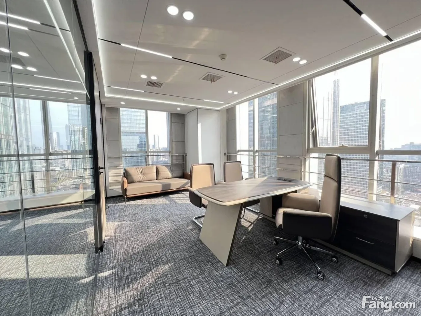 市中心东门大桥丨双面采光4隔间24工位丨地铁口上建!无加时费