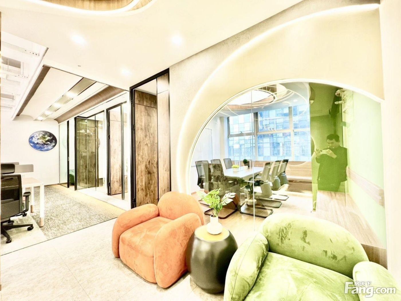 天府三街艺术装修,3隔间16工位,新中式接待风格,香年广场