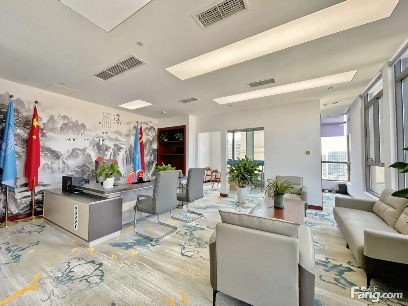 二街整层实木豪装 20隔间30工位 超大接待室 党政国企风格