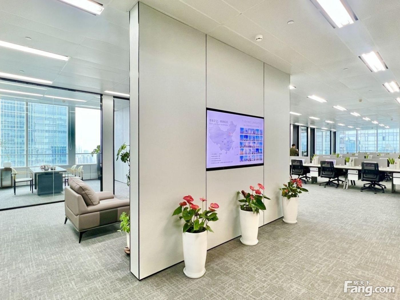 楼盘:IFS国际金融中心 面积:800平(200-2000平面积可选) 出租价格:50元/㎡/月(特价房,并不是该楼均价) 格局:电梯口户型,大气前台形象墙,室内12个独立隔间,大厅个工位,高区双面采光,拎包入住。 交通:2/3号地铁线春熙路站 优势:交通方便好招人,上下班方便通勒时问短 楼盎基础设施完善,大堂方便接待外来访客,物业定期保洁,绿植养护 周边有饭店、商场、银行、政务中心,吃饭娱乐办事都方便的很