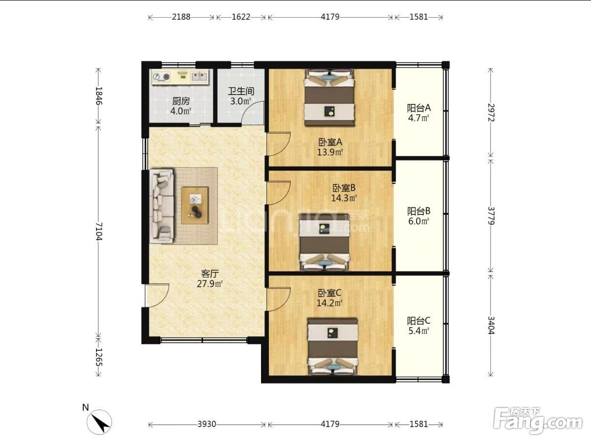 隆发苑 中层 套三带3个阳台 简装 全齐 3空调