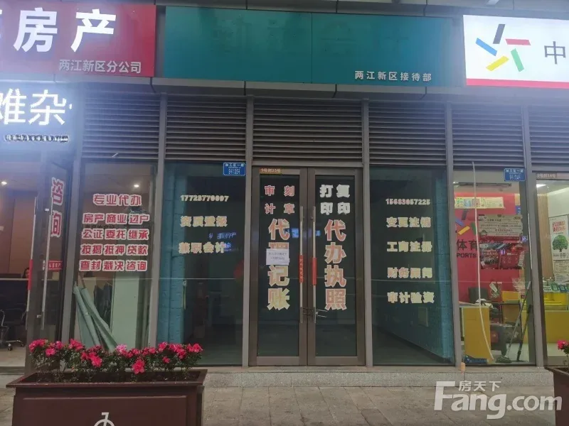 户型方正。可外摆。有上下,水烟道。有天然气管道,但未开户。 人流主要针对两江政务大厅办公人群人流量大。周边聚集有许多4s店,旁边还有一个金山创意园写字楼群。加奥特莱斯自带全城流量。