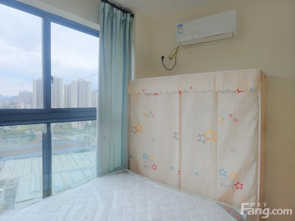 2020年底装修,两室一厅一卫,房子整体很新,装修风格简约舒适,家电齐全,配有全新海尔电冰箱、海尔全自动洗衣机、创维电视、两个奥克斯空调,卧室安装的是木地板,更加温暖舒适。楼层在22楼中间楼层,南北朝向,每个房间都很敞亮,采光好、视野广。明星小区,物管负责周到,小区绿植茂密、环境好。周边配套齐全,大型商超如永辉超市、美食街等近在咫尺,轻轨站就在旁边,出脚方便。照片是最新实拍,已请保洁全方位打扫干净,可直接拎包入住。2025年3月15日两个卧室刚新配了全新品牌实木床、席梦思弹簧床垫、衣柜,生活居住舒适感加倍。主卧和客厅窗外安装有雨棚和衣服架,晾衣服种花草无忧。房东直租,无中介费!请放心联系!