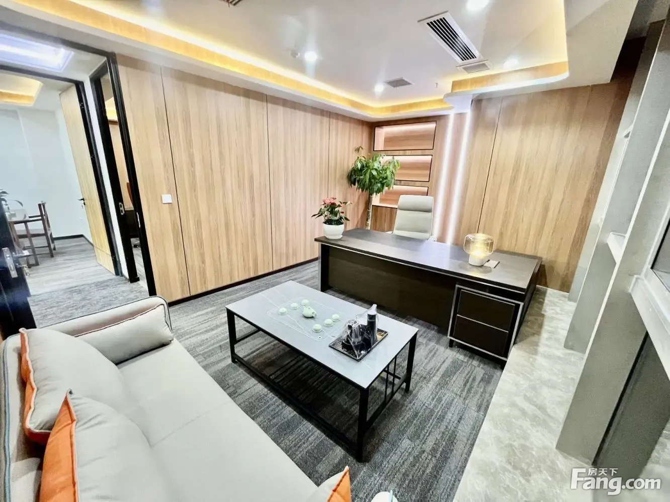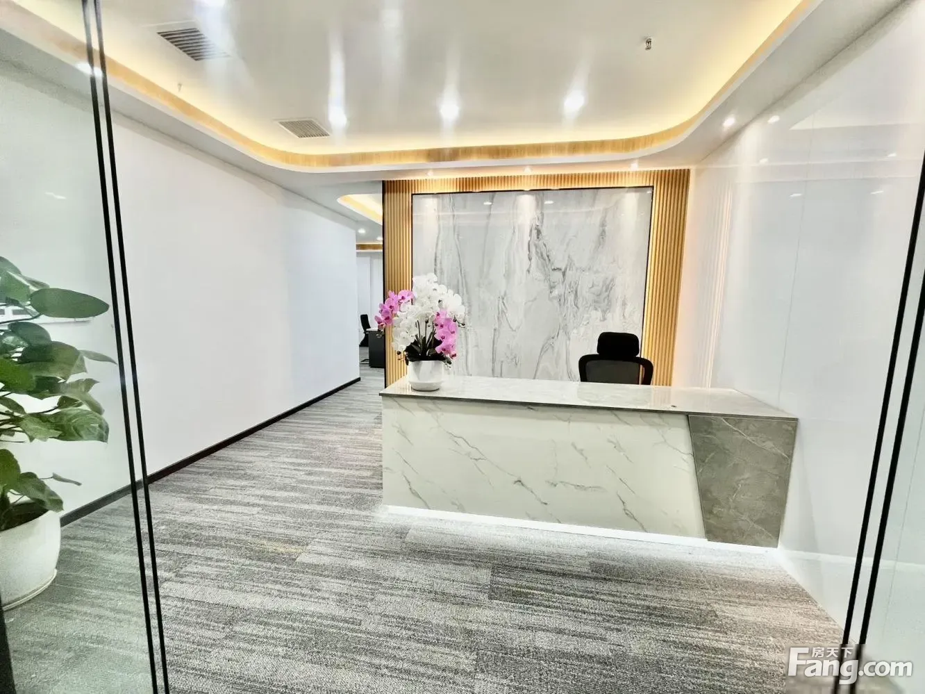 新中式送露台 精装修 正对电梯口 6+1办公室格局出租!