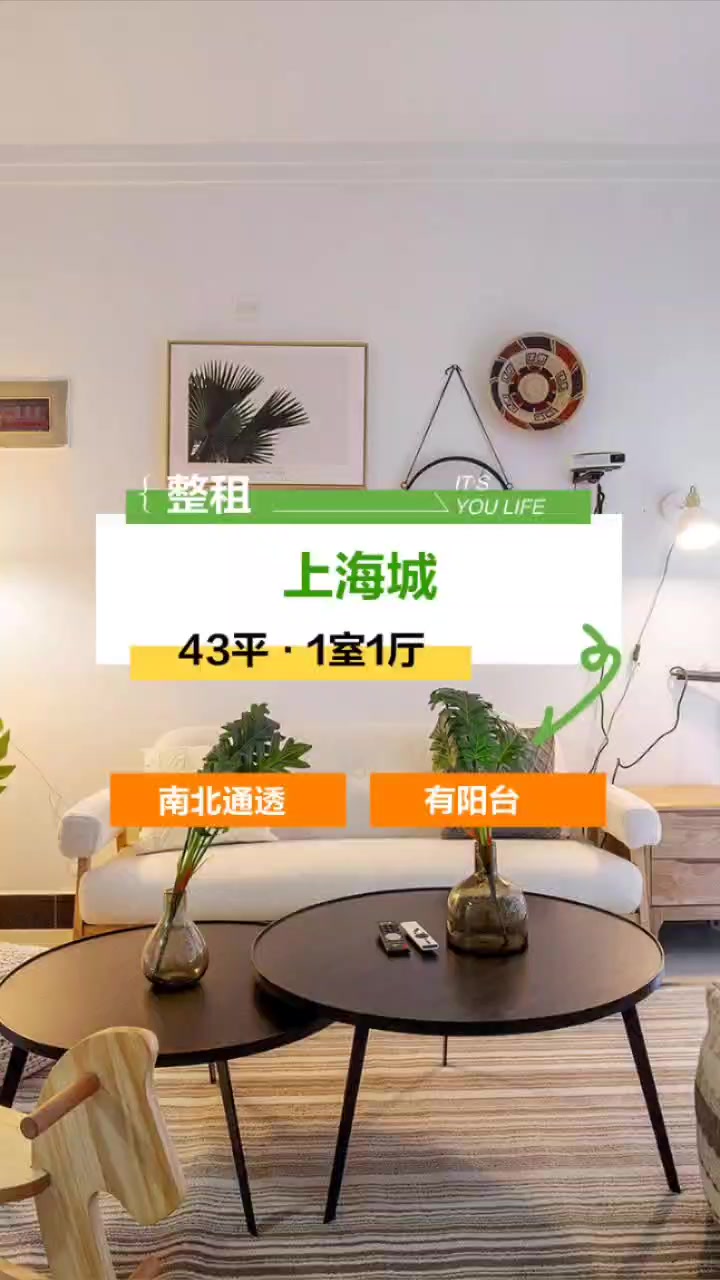 上海城 1室1厅1卫 精装修 1500元 43.31平米
