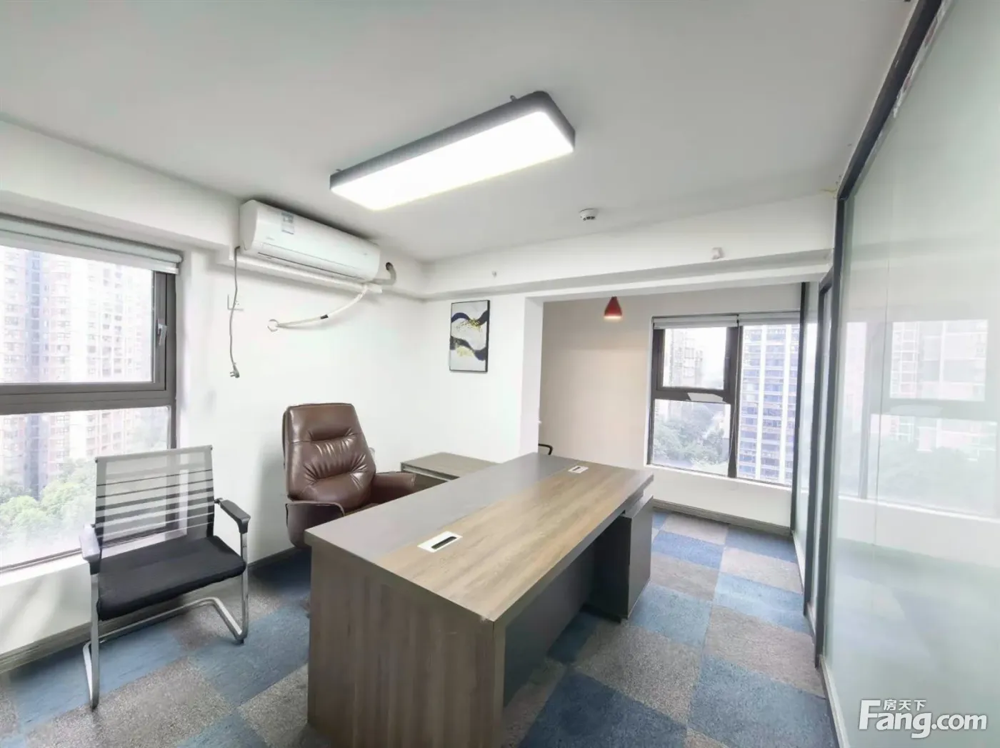 物业名称:金贸时代 面积:160平 (户型方正、金童路轻轨,区府旁,附带露台) 格局:户型方正 全落地窗 两面采光 物管费:5元/平/月(含水、电费等公摊能耗费) 格局:1(经理室)+1(会议室)+10(工位) 装修情况:室内天花:铝扣成品天花 室内地面:15公分 架空地板 室内墙面:刷白 全新装修带家具 停车:临停4元/h,15元/12h 【注】图片由本人亲自拍摄,还有周边区域楼盘可供选择,欢迎提前咨询