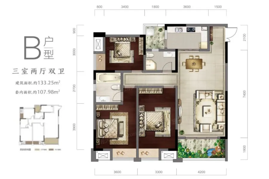 2室1厅2卫