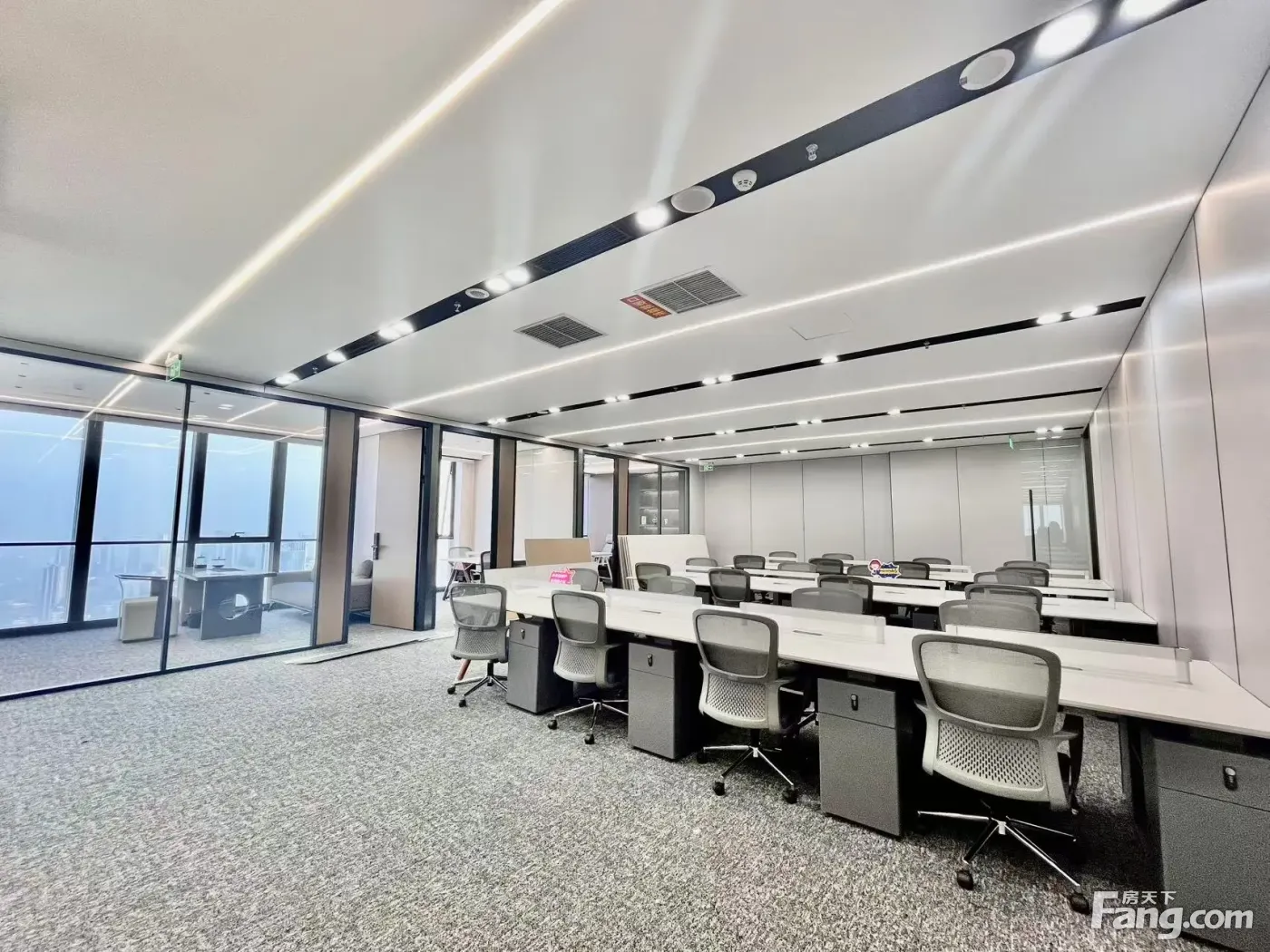 物业名称:财富中心 面积:328平 (视野开阔) 格局:户型方正 全落地窗 两面采光 租金:60元/平/月 物管费:22元/平/月(含水、电费等公摊能耗费) 格局:3(经理室)+1(会议室)+24(工位) 装修情况:室内天花:铝扣成品天花 室内地面:15公分 架空地板 室内墙面:刷白 全新装修带家具 电梯:高区4部?低区4部?货梯2部 停车:室外收费2元/h?8元/12h?15元/24h 室内收费4元/h?15元/12h?25元/24h 非固定车位月租:550元/月 固定车位月租:1000元/月 ? 优势: 超甲楼宇 | 奢华大堂 | 集聚精英 大气前台 | 简约艺术 | 双面采光?? 【注】图片由本人亲自拍摄,还有周边区域楼盘可供选择,欢迎提前咨询
