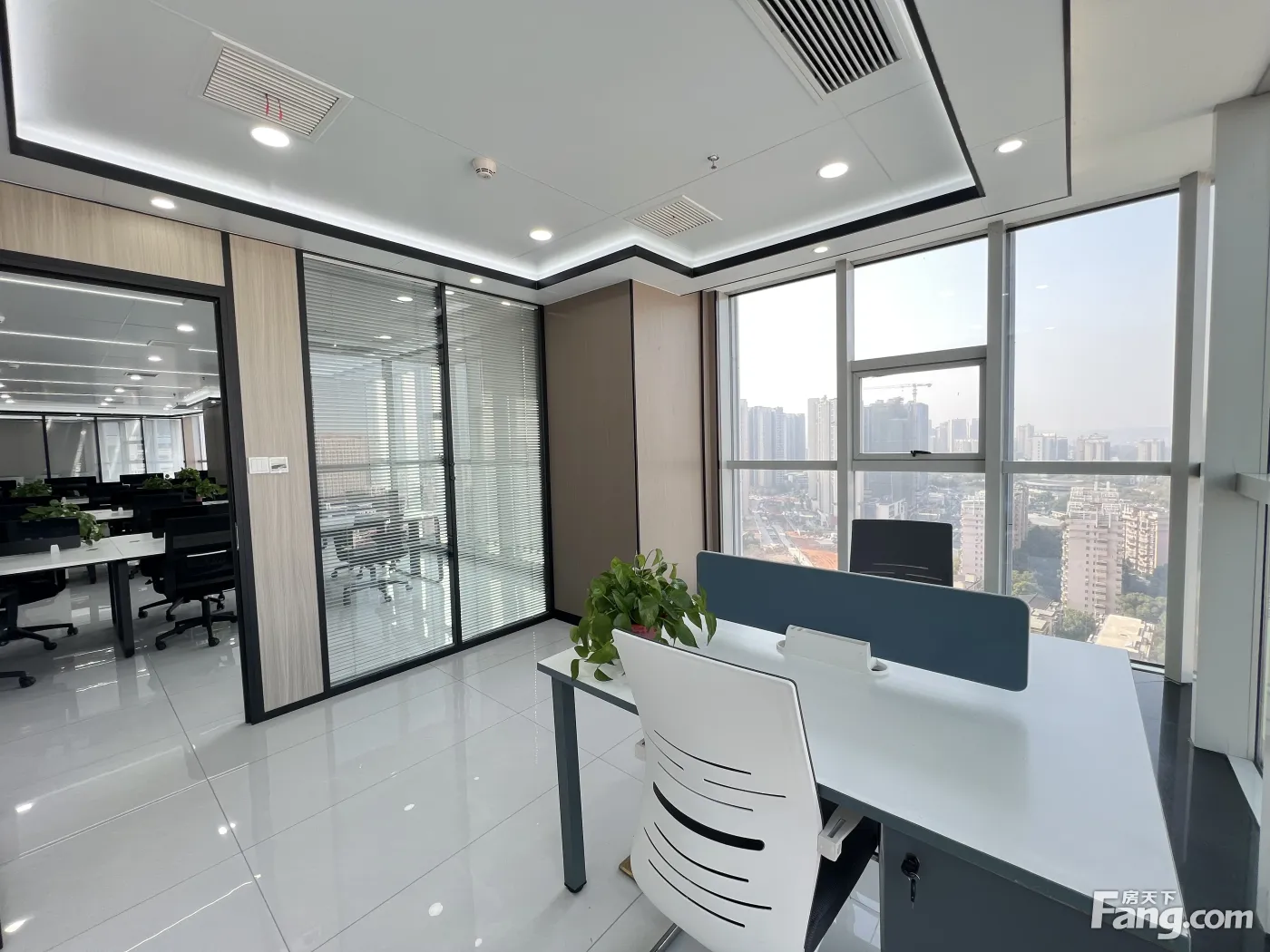 楼盘:鑫融国际,面积:216平,朝向:西南朝向,租金:1.6/元,交通:楼下即是公交站,楼下1号线涂家冲地铁口,交通出行方便,周边多条公共交通覆盖端大气上档次的外观,负责的物业服务,完善的配套设施,带来全天候舒适的办公环境!室内格局:一个大气前台。一个员工大厅可坐20人,5个办公室,房屋视野开阔,正江景采光好。随时看房钥匙在手