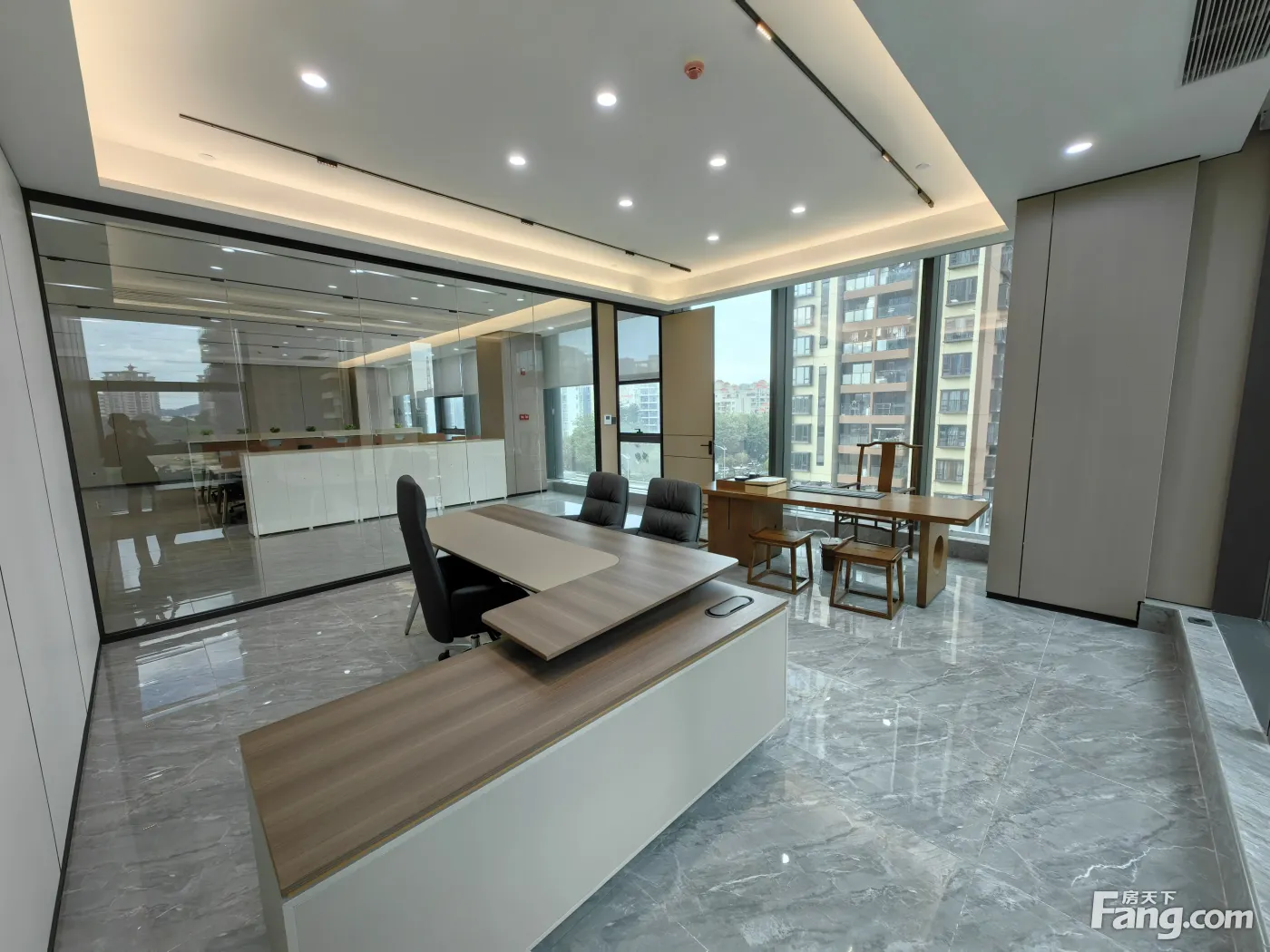 东城海德琥珀台高楼层304平豪装写字楼!全齐4个隔间!转角位