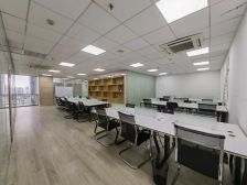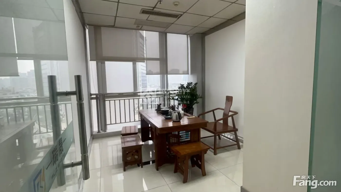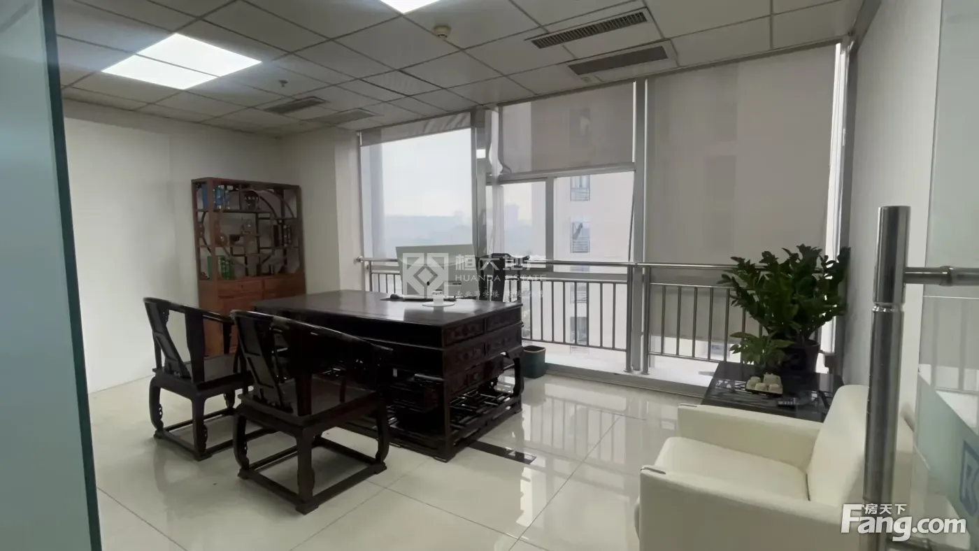 位于东莞核心地铁口区,周边交通和商业配套完善,交通和生活便利,便于企业招人,该写字楼位于高层南向单位,七字转角位通风采光好,格局方正实用,正望东莞大道,精致装修保养新的,有一个经理室一个会议室和一个财务室和一个接待室,大厅宽敞可以坐下20人左右办公,业主直接出租的,不需要转让费,拎包就可以办公了
