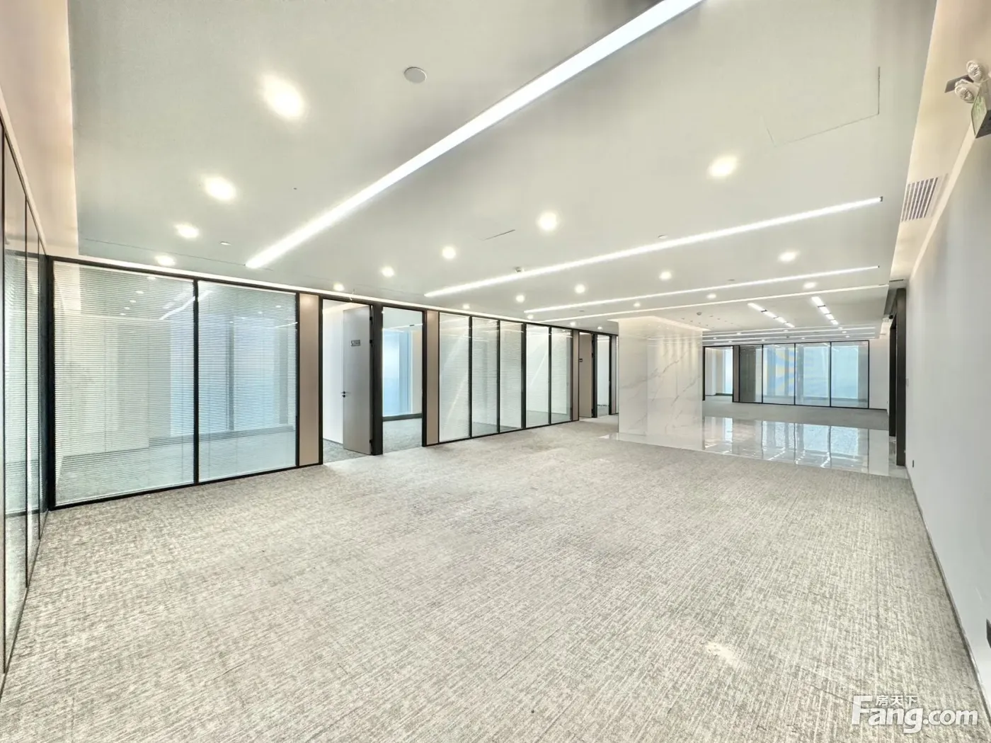 位于南城总部基地蛤地地铁口,高端写字楼集群之地,该单位为主楼高层整层单位出租的,是一手房东直接放租的,面积大小可以任意组合,电梯口位置,七字转角位,三面采光,景观和视野非常好,格局方正实用,前台大气,室内一共有10个独立办公室,适合抖音直播、律师事务所等使用,业主也可以根据您的需要提供定制装修。