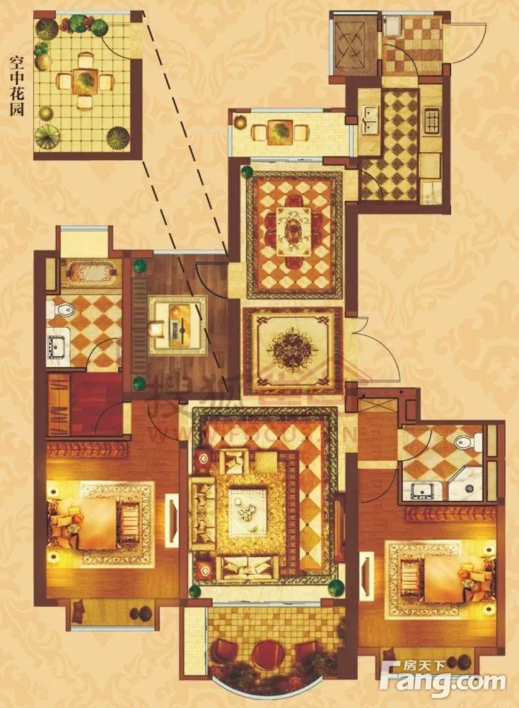 带花园出租 万达公馆大3房 位置安静看房方便 安选