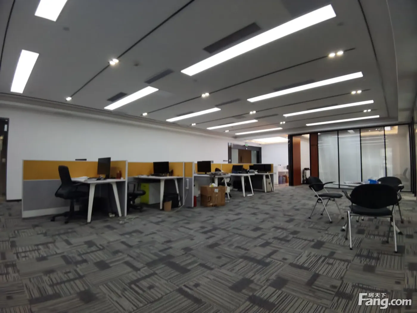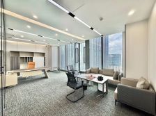 位于南城总部基地蛤地地铁口,高端写字楼集群之地,该单位为主楼高层,电梯口位置,室内带豪华装修,原本业主买来装修是打算自己公司用的,所以装修用的材料都是比较好的,后来因为业务扩张,场地不够用所以才放租出来,室内装修保养新从来没有人用过,七字转角位,三面采光,采光视野好,格局方正实用,室内有一个总经理室、一个财务、一个大会议室和一个接待室等共4个隔间,大厅能坐下15-20人左右办公,全新装修业主可以配上全新的办公设备,拎包就可以入驻办公,不需要转让费