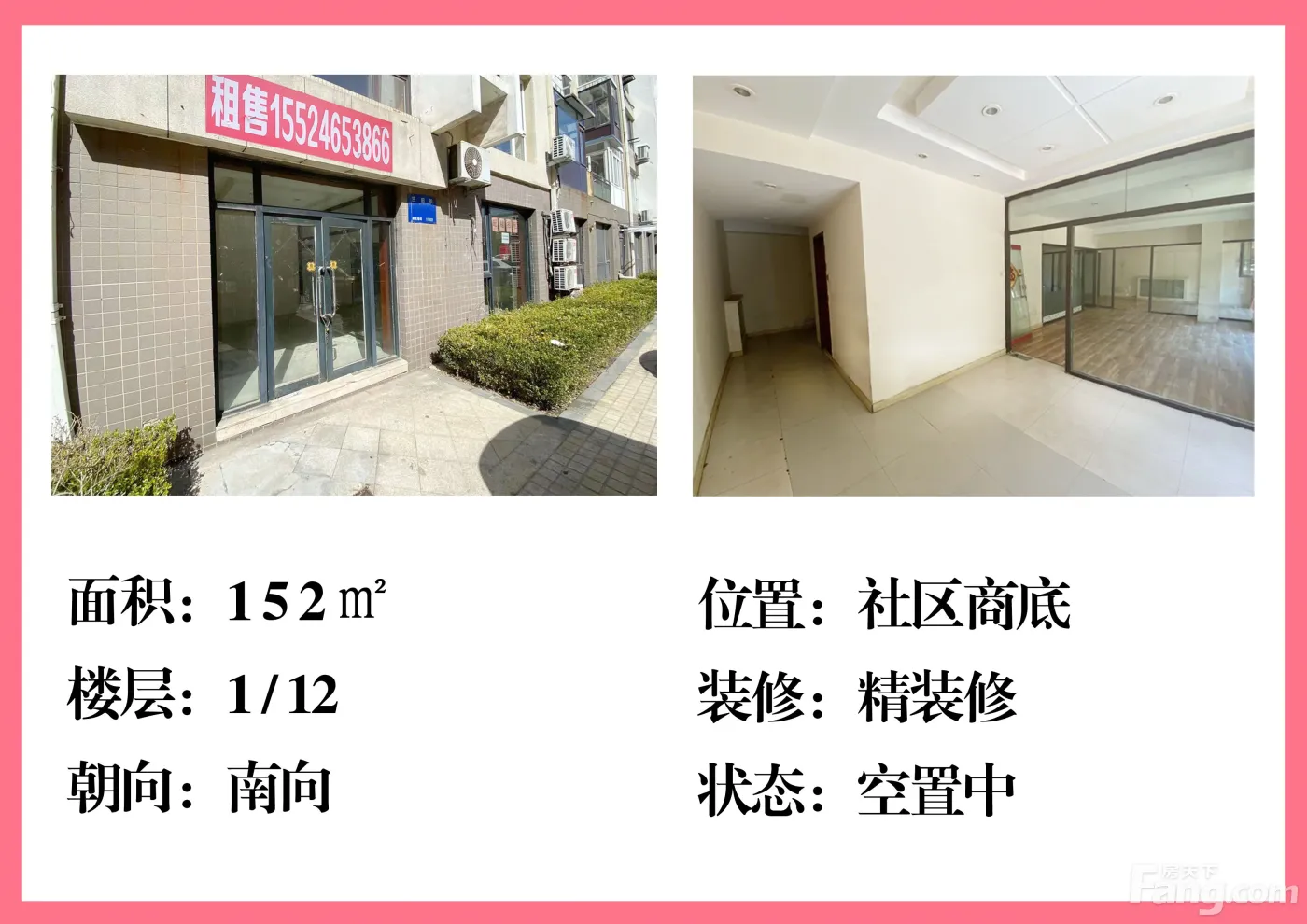 万合新家园社区商底整租,面积152.27平米,南向;位于马栏广场商圈,在万合新家园小区院内,购物方便、闹中取静。感兴趣的话,联系我吧~