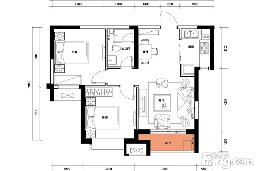 2室2厅1卫