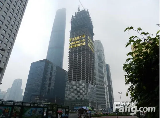 富力盈凯广场简介 富力盈凯广场项目占地7,900㎡,总建筑面积约104732.47㎡,单层建筑面积约2,400㎡,层数65层,总高达到286米,项目负2层至3层为大堂和配套,4至52层为超写字楼。53-65层引入了国际五星酒店“柏悦”酒店(ParkHyatt),为项目一体化的商务运营注入了强大的品牌支持。区位优势:富力盈凯广场位于珠江新城的核心金融商务区,处于珠江新城CBD中轴线西侧(富力中心旁),项目东靠广州国际金融中心,西临华夏路,南接富力中心,北连花城大道,周边与广东省博物馆、广州大剧院、广州市图书馆、广州市第二少年宫和广州市国际金融中心5大珠江新城标志性建筑相连。