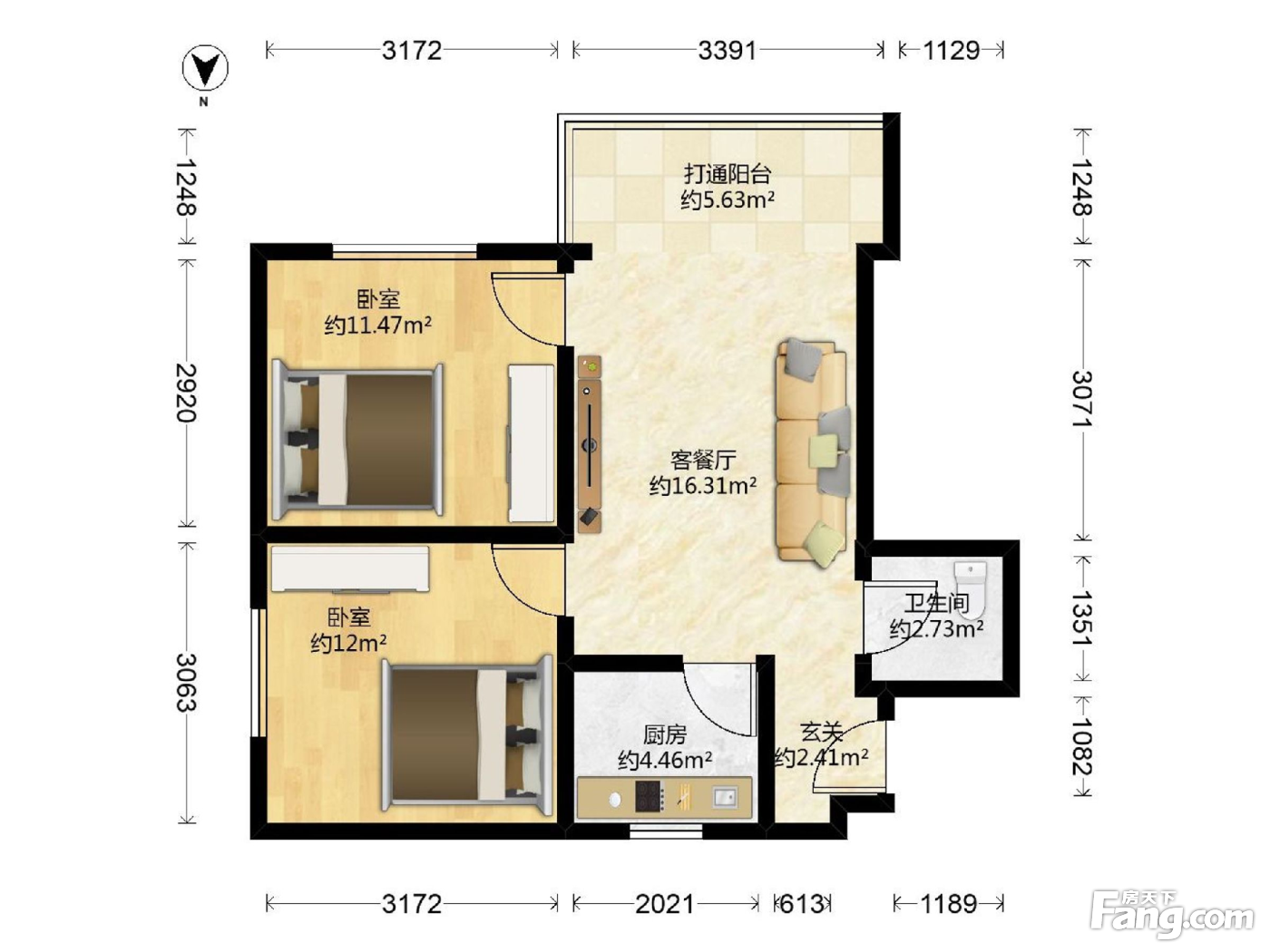 寺贝新街 2 房 55 方