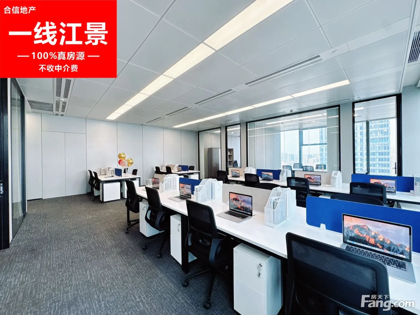 MFG 铭丰广场 28楼超高区 东北双面采光江景视野 房源详情 服务面积:398㎡ 租金:70元/平方 管理费:35元/方 朝向:东北向望江望城景 户型特点: 4+1格局,设有1个老板间+1个室,1个财务室,1个独立房间,办公工区有30个办公工位(可容纳35+),全新精装修 + 全套高级家具交付,东北双向采光望江望城景无敌视野,随时拎包入驻。